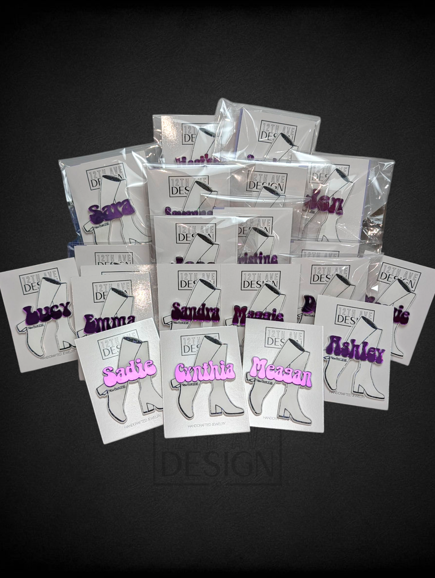 Traditional: your design is permanently printed on crystal clear acrylic using special ink and heat. Custom shapes are laser cut and painted to achieve your design.